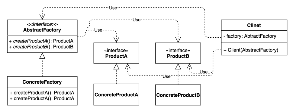 추상 팩토리 패턴은 관련있는 여러 객체를 구체적인 클래스에 의존하지 않고 만들 수 있게 해주는 것이 목적.