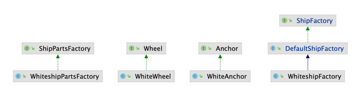 ShipFactory shipFactory = new WhiteShipFactory(new WhitePartsFactory());