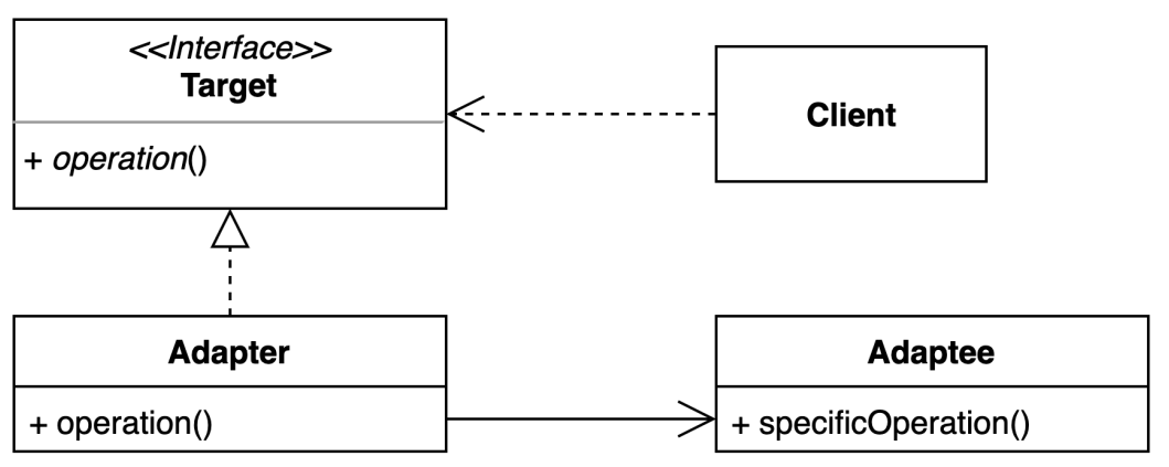 클라이언트가 사용하는 인터페이스의 구현체로 바꾸어주는 패턴이다.