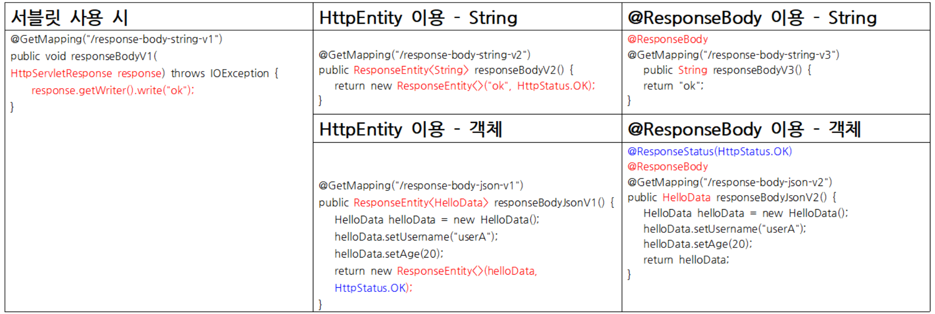 | HTTP 메시지 | HTTP API를 제공할 때 사용 (위에서 요청과 함께 살펴보았다) |